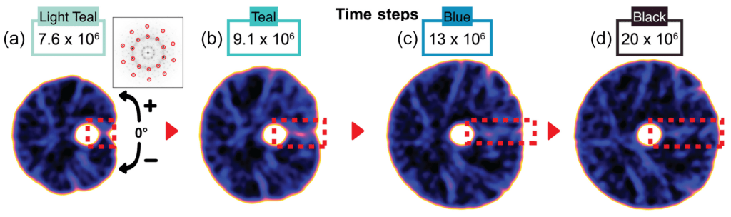 The results were astonishing: both the live-action X-ray movies and the computer simulations showed the quasicrystal growing around the pores without forming any permanent defects.
